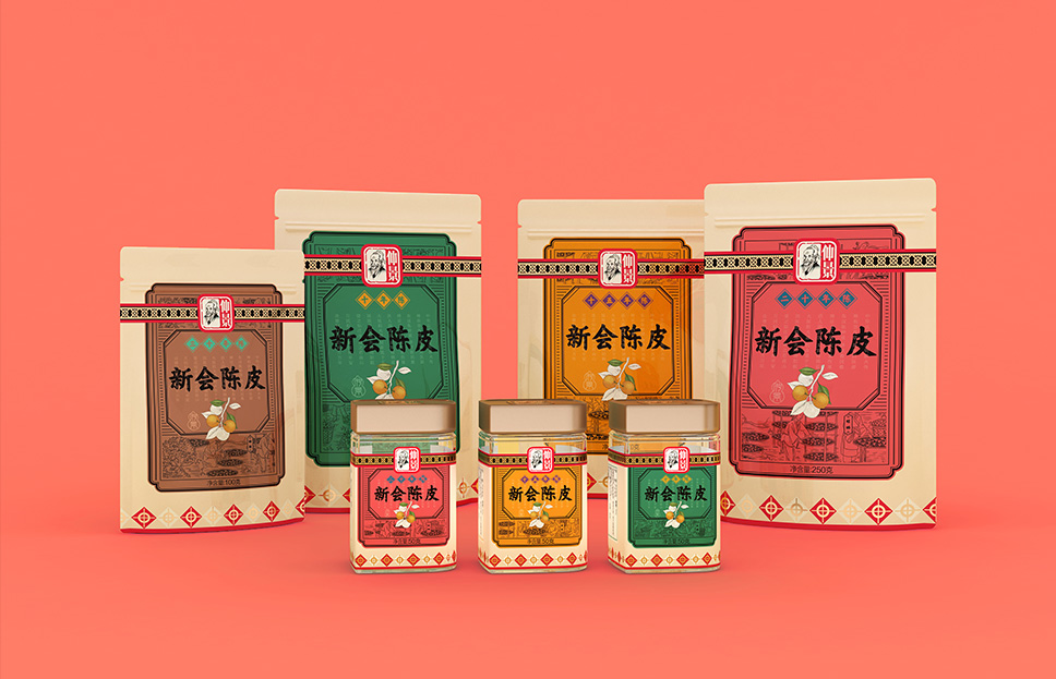 在戰略色彩上我們根據不同的采摘季節陳皮的顏色定位十年、十五年、二十年、三十年,能讓消費者在終端快速識別商品,從而引發購買。